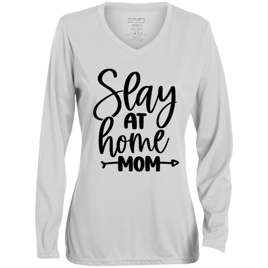 Slay at Home Mom 1788 Ladies' Moisture-Wicking Long Sleeve V-Neck Tee